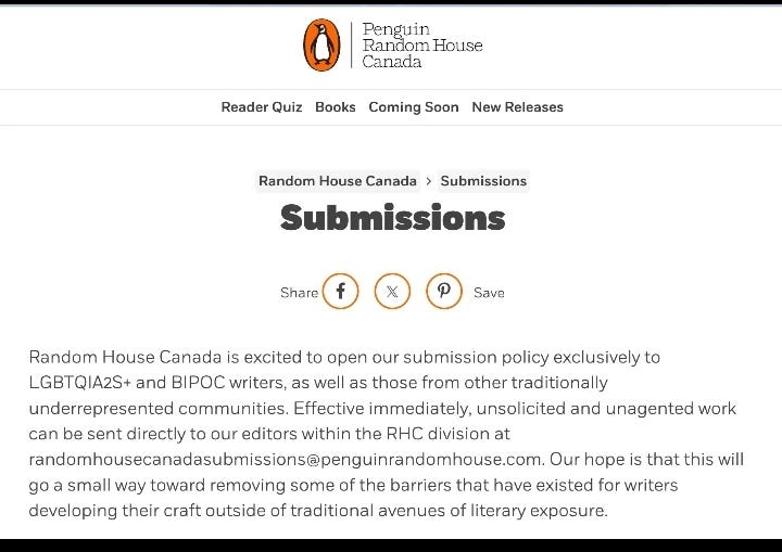 Why is the Based Book Substack needed? Because gatekeeping is real, and the mission of mainstream publishing is to push the narratives and cultural programming they want to impose on you, not to offer the entertaining and worthwhile stories you want to read. One mainstream literary agent declares she is “ONLY open to receiving queries from writers from marginalized backgrounds such as (but not limited to) those who identify as BIPOC/BAME, LGBTQ+, ND, and DIS.” Even authors of woke fiction risk cancellation if a mob of hate reviewers decide they are insufficiently “diverse” and have “culturally appropriated” otherwise woke writings.